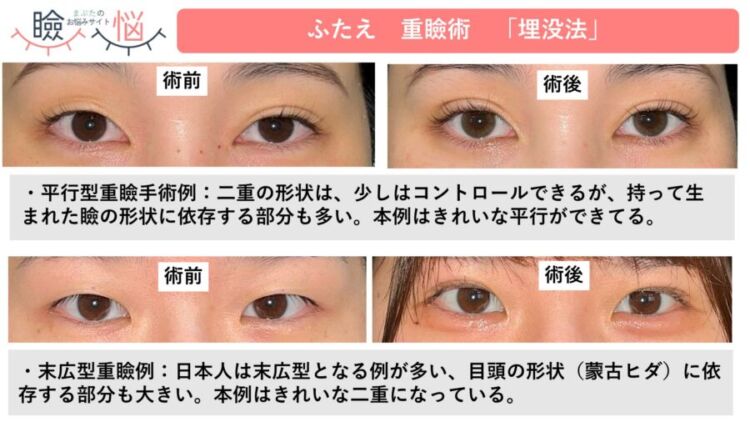 また、初回のカウンセリングで「埋没法はおすすめしにくい」と正直にお伝えすることもあります。記事中にもありましたが、たとえば、まぶたのたるみが強い方や皮膚が極端に厚い方は、満足のいく結果が得られにくいためです。
